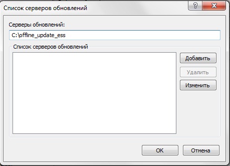 В строке «Серверы обновлений» указать путь к папке с обновлениями(например, C:\offline_update_ess), далее нажать «Добавить» и «OК»